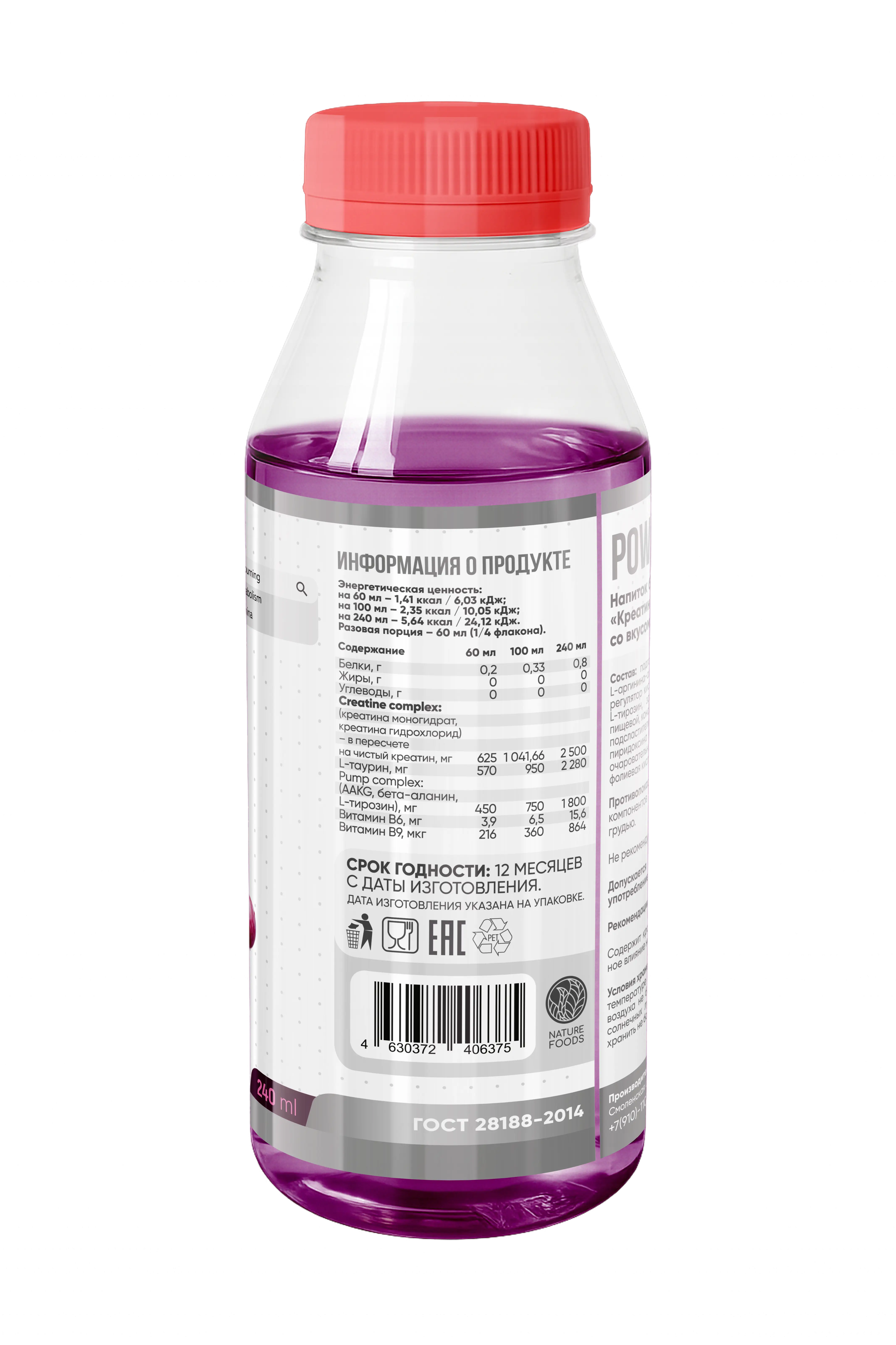 Nature Foods Power Drink Напиток безалкогольный негазированный Creatine complex 240ml