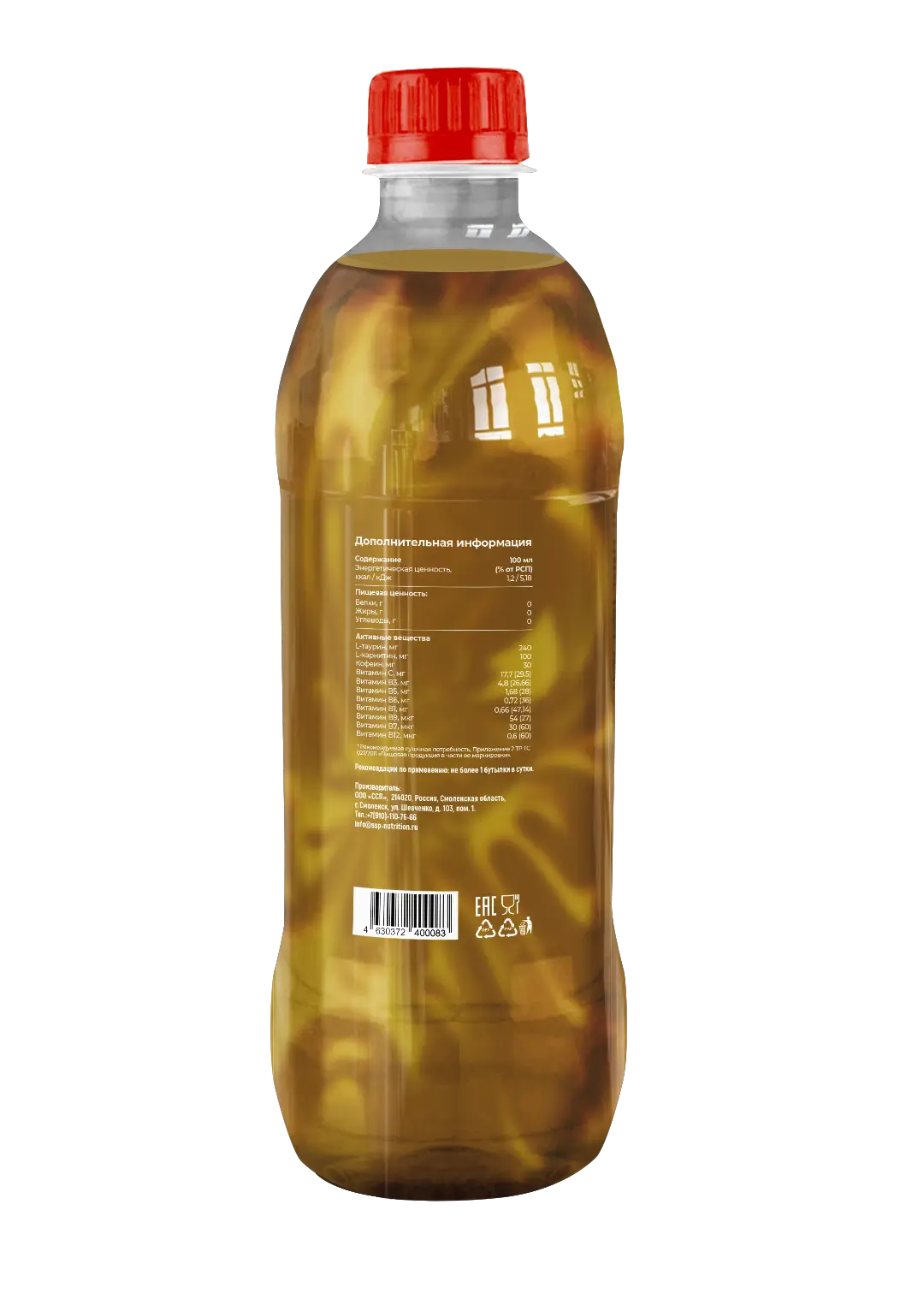 - Удобный формат: Компактная бутылка объемом 500 мл идеально подходит для тренировок, работы или активного отдыха.