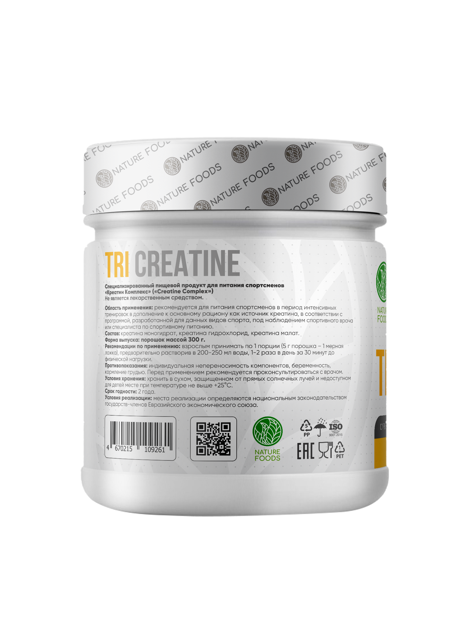 Nature Foods Tri-Creatine, 300 г — мощная формула для роста силы, выносливости и мышечной массы
