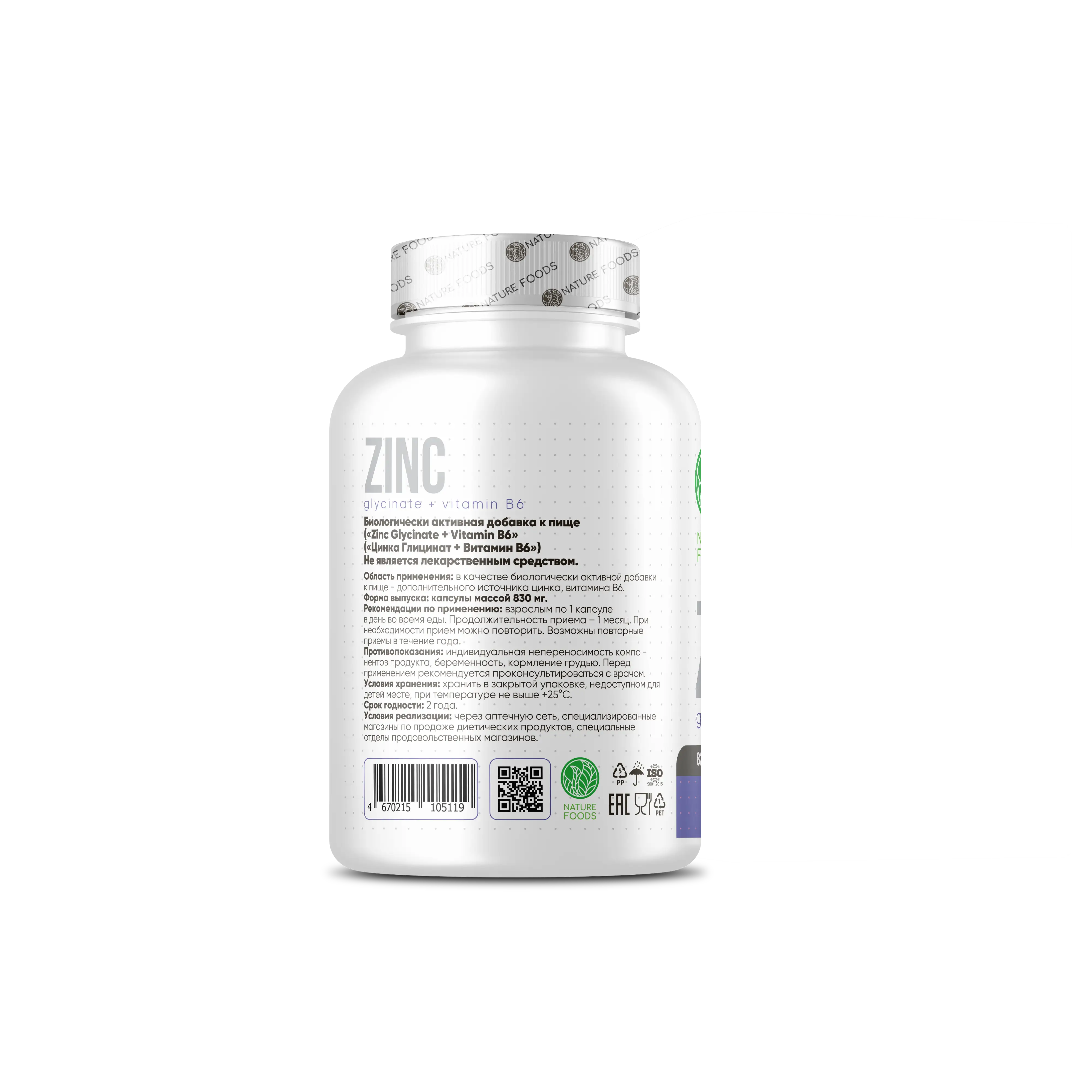 Nature Foods Zinc Glycinate + B6 – Максимальная усвояемость и забота о вашем здоровье!