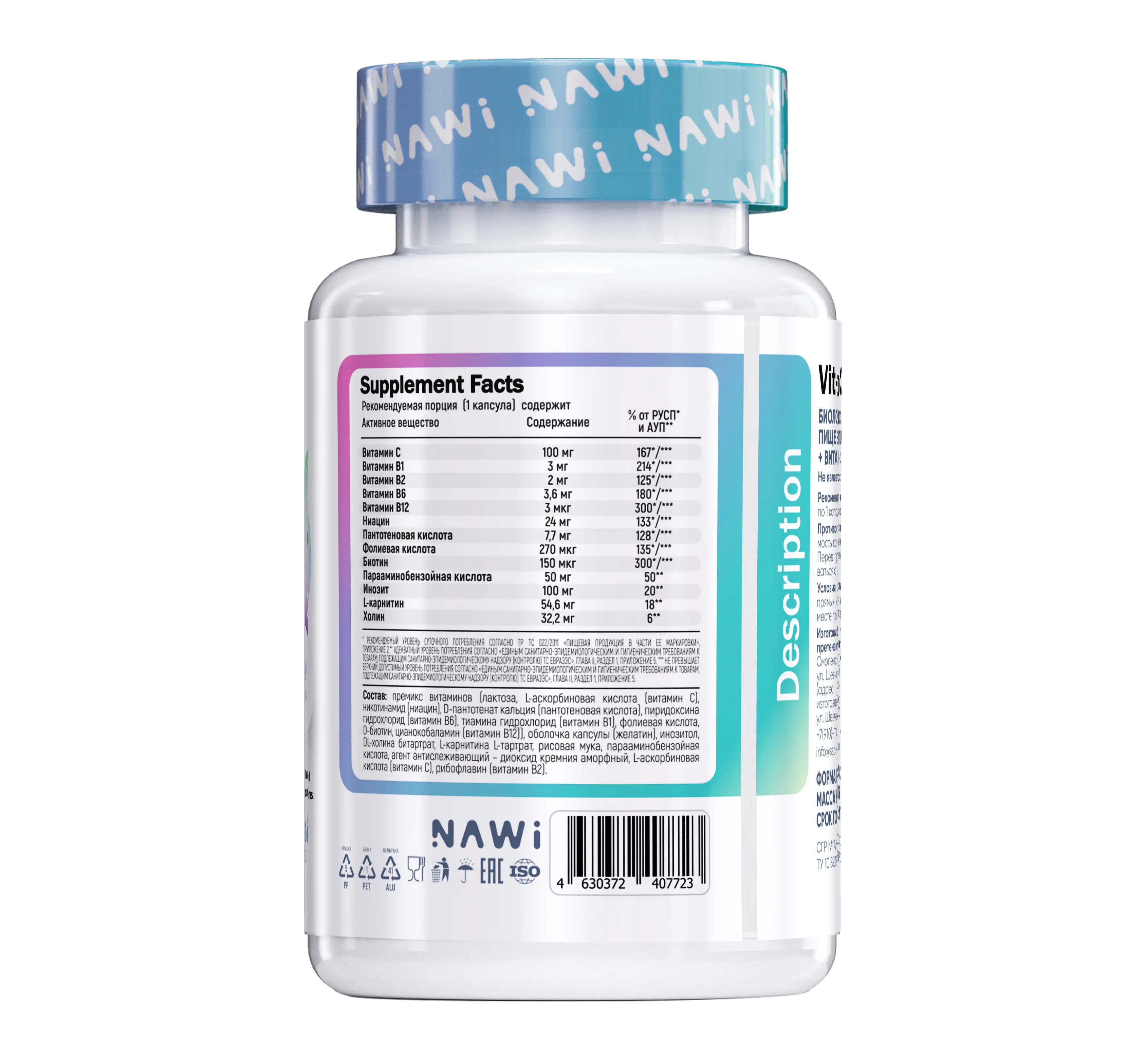 NAWI Витамин B-Complex + Vitamin C, 60 капсул – это сбалансированный комплекс, созданный для поддержки энергии, нервной системы и иммунитета каждый день. Формула объединяет все основные витамины группы B и витамин С, усиливающий их действие.