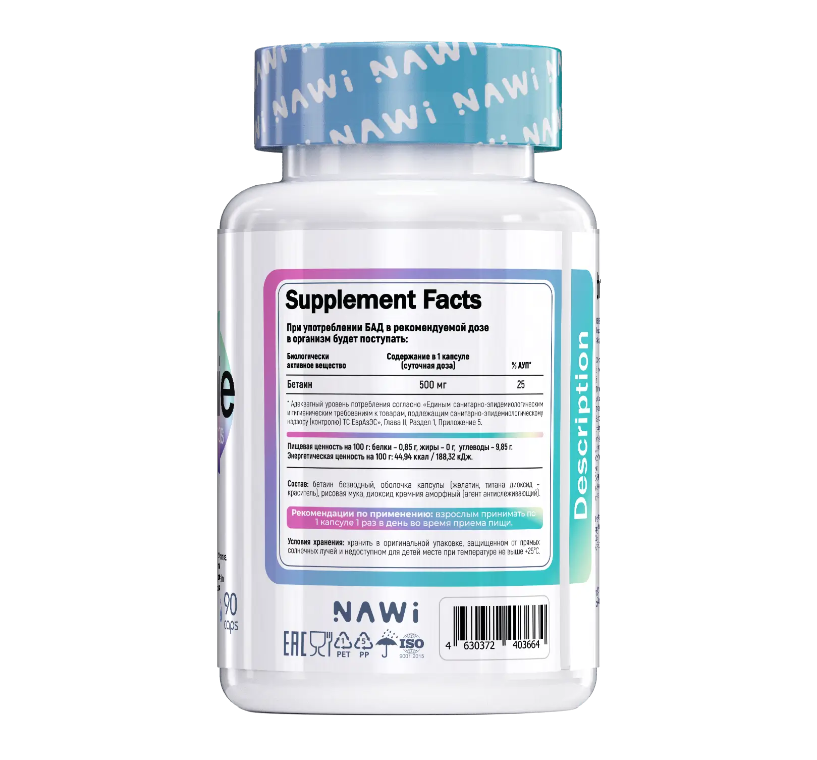 NAWI Betaine 90 caps – поддержка метаболизма и выносливости