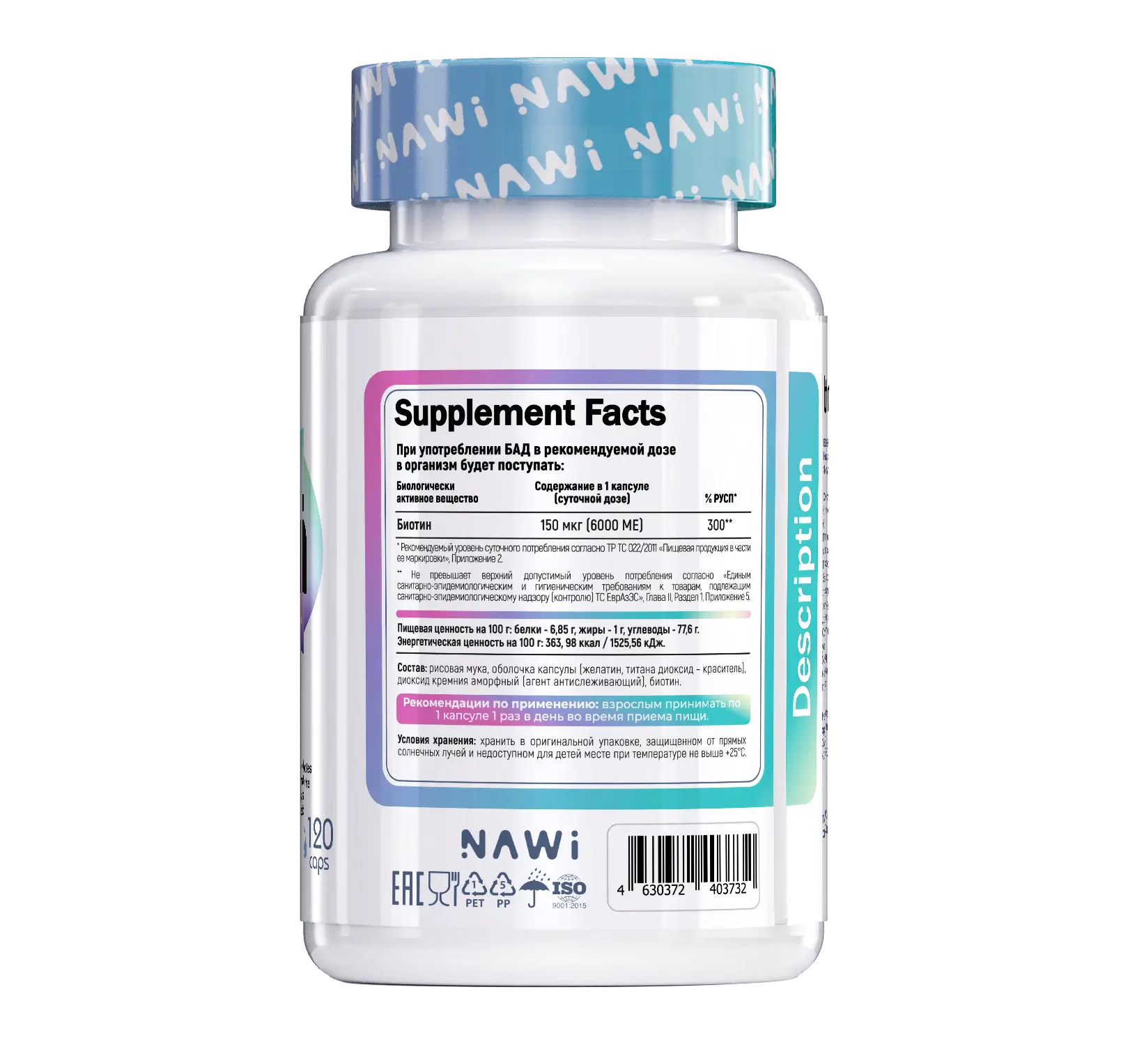 NAWI Biotin 120 caps – поддержка здоровья кожи, волос и ногтей