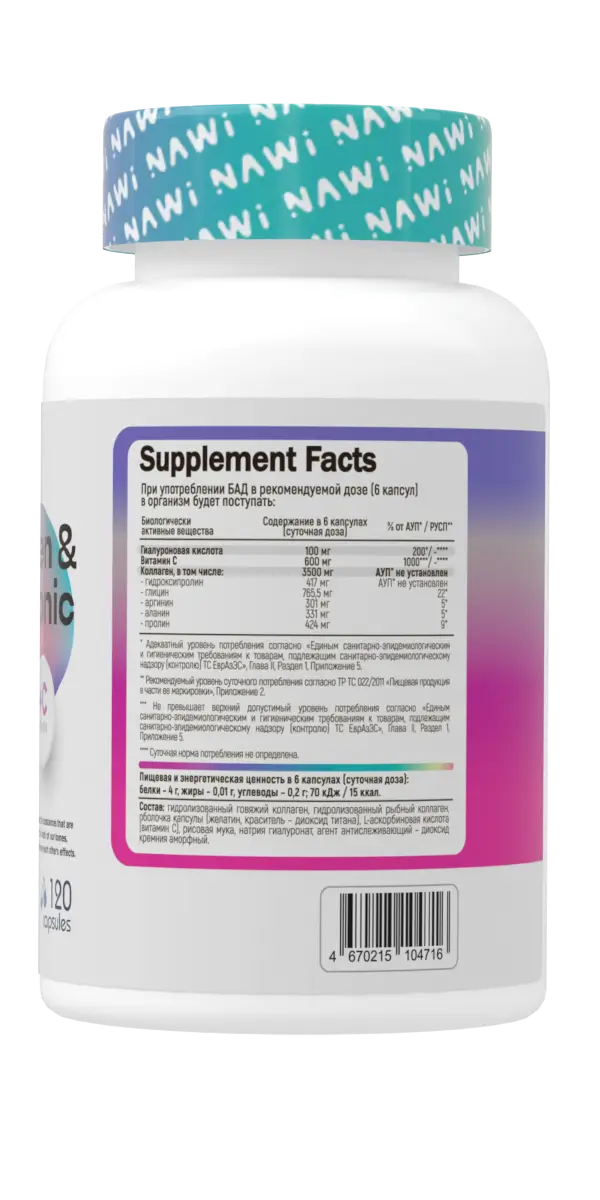 NAWI Marine Collagen + Vitamin C + Hyaluronic acid 120 caps