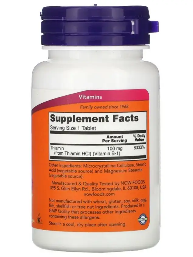 Now Foods Vitamin B 1 - также известный как тиамин, это важное питательное вещество, впервые классифицированы в 1936 году химик Роберт Уильямс. В качестве кофермента, тиамин помогает организму усваивать углеводы и липиды и играет важную роль в нервной ткани. Каждая клетка организма требует витамин В1 в виде топлива.