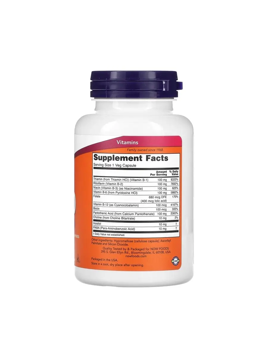 Vitamin B-100 от NOW будет хорошей помощью организму при: