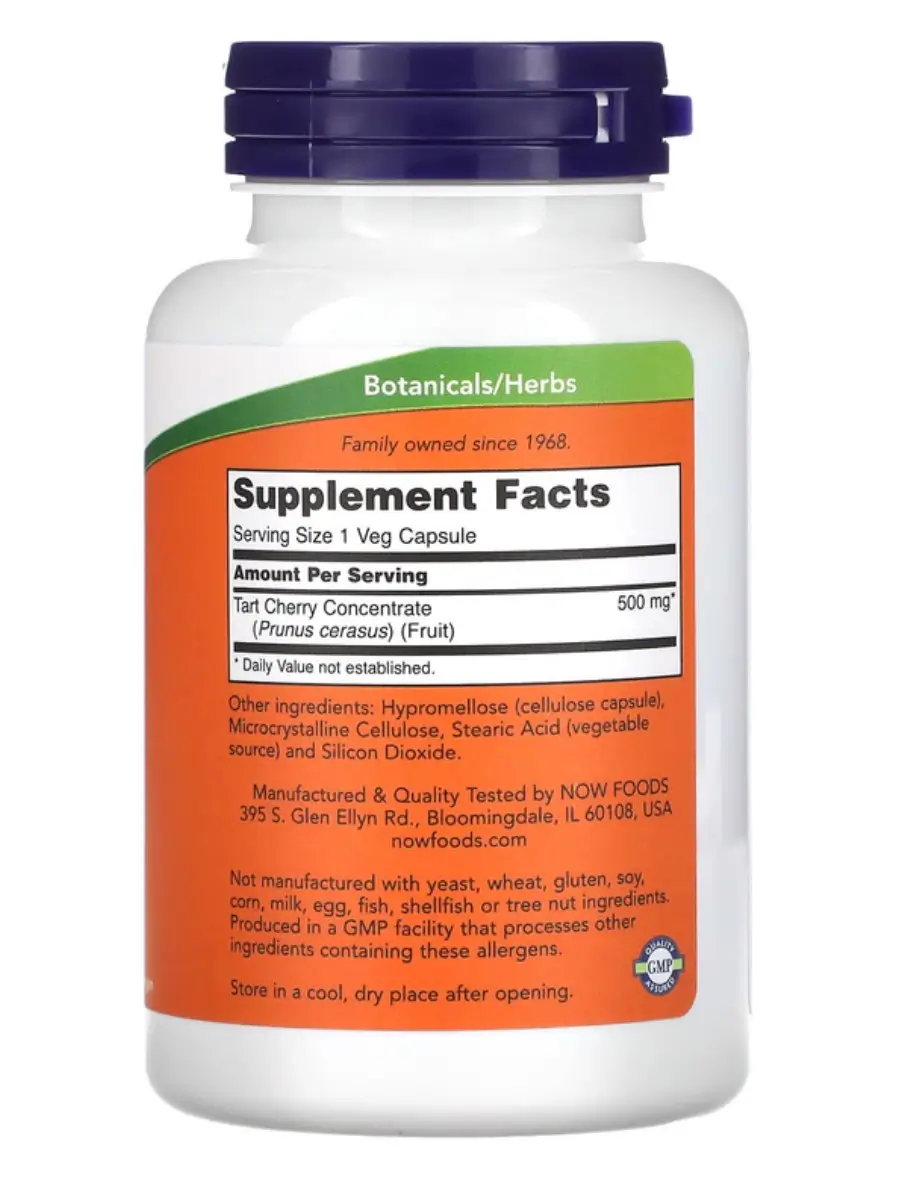 NOW Tart Cherry 500 mg, 90 веган капсул – природная поддержка для вашего здоровья!