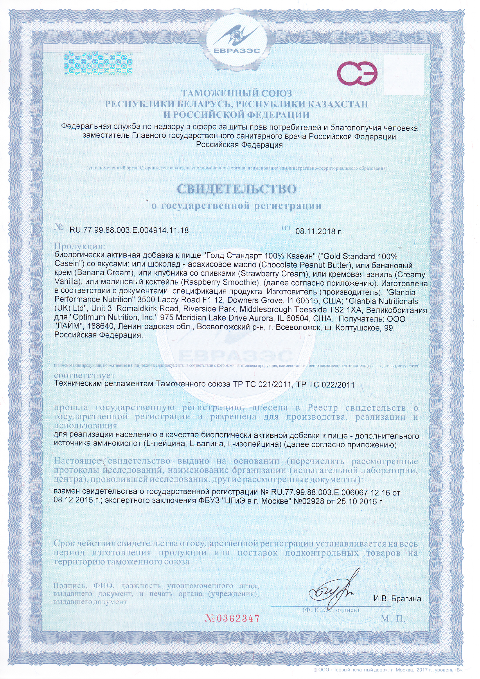 Принимайте 100% Casein Gold Standard прежде всего утром, сразу после сна, а также в любое время, когда Вам нужен качественный протеин пролонгированного действия