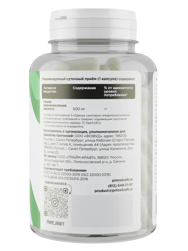 Prime Kraft БАД К ПИЩЕ ГАМК капс" ("GABA caps"), 90 капс.