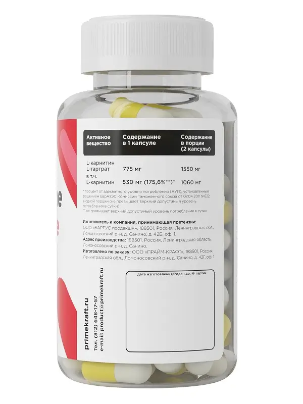 СПДПП Prime Kraft L-Carnitine L-Tartrate 90 caps