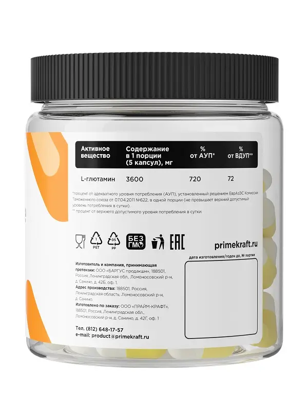 Состав: L-глютамин, желатин (капсула).
