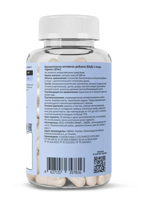 Prime Kraft Zinc 90 капсул – ваш источник цинка для здоровья и иммунитета
