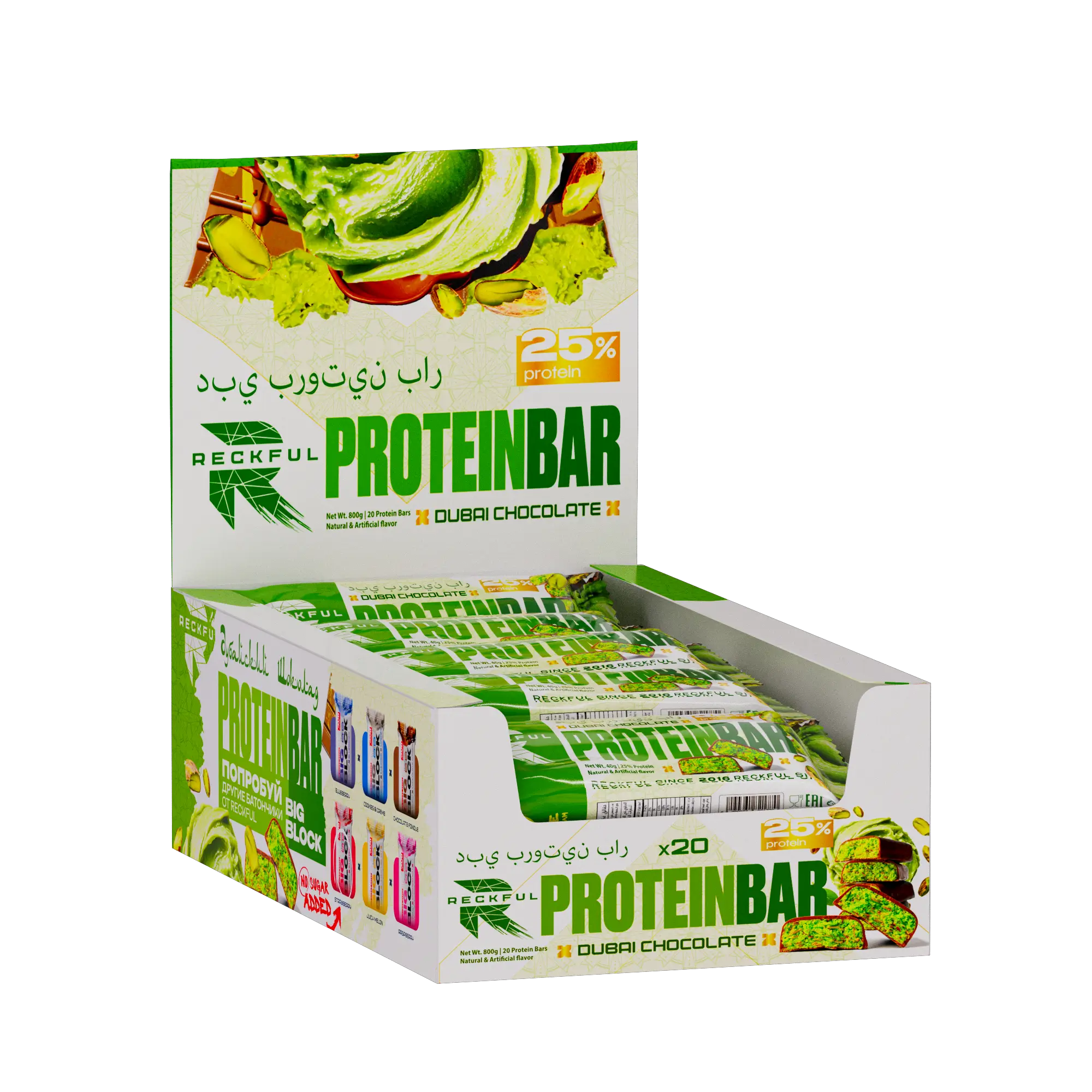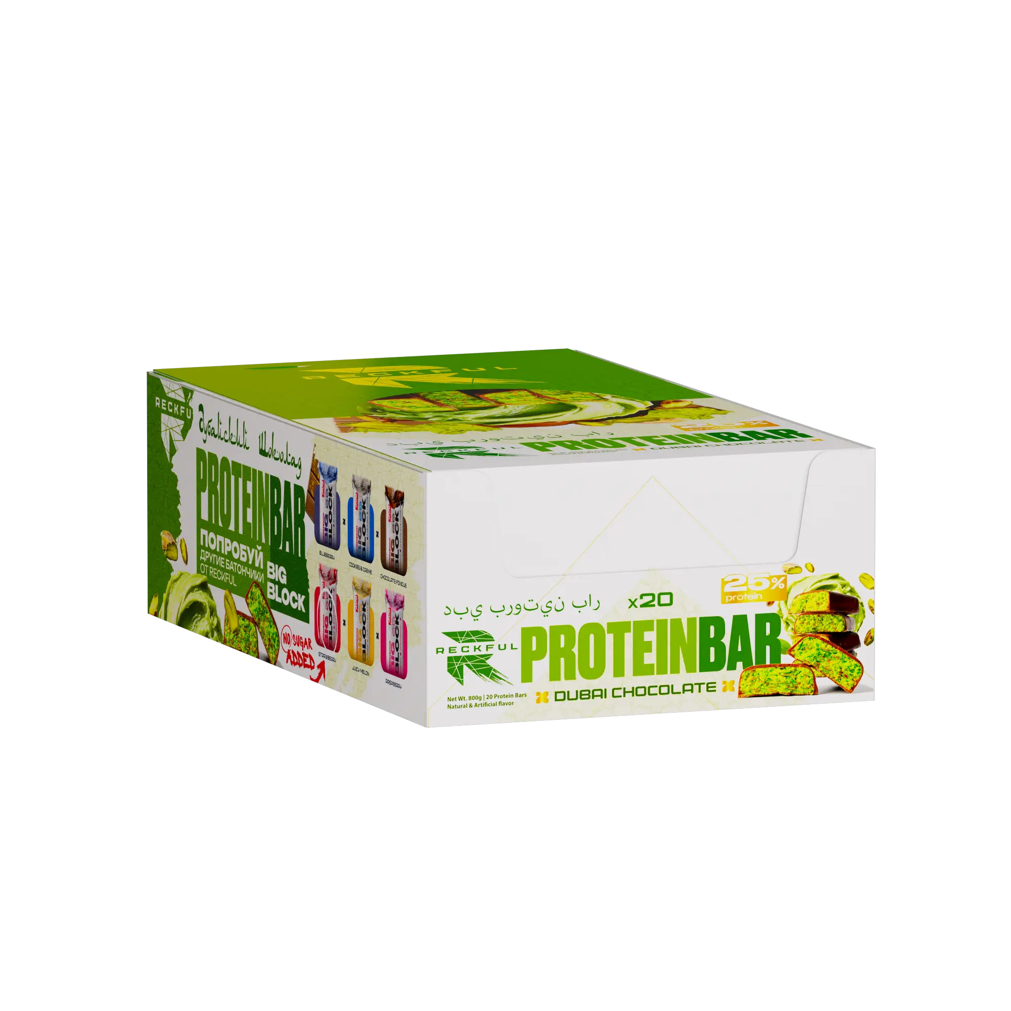 Высокобелковые протеиновые батончики Reckful Big Block со вкусом Дубайского Шоколада– это отличное решение для тех, кто ведет активный образ жизни и следит за своим питанием.