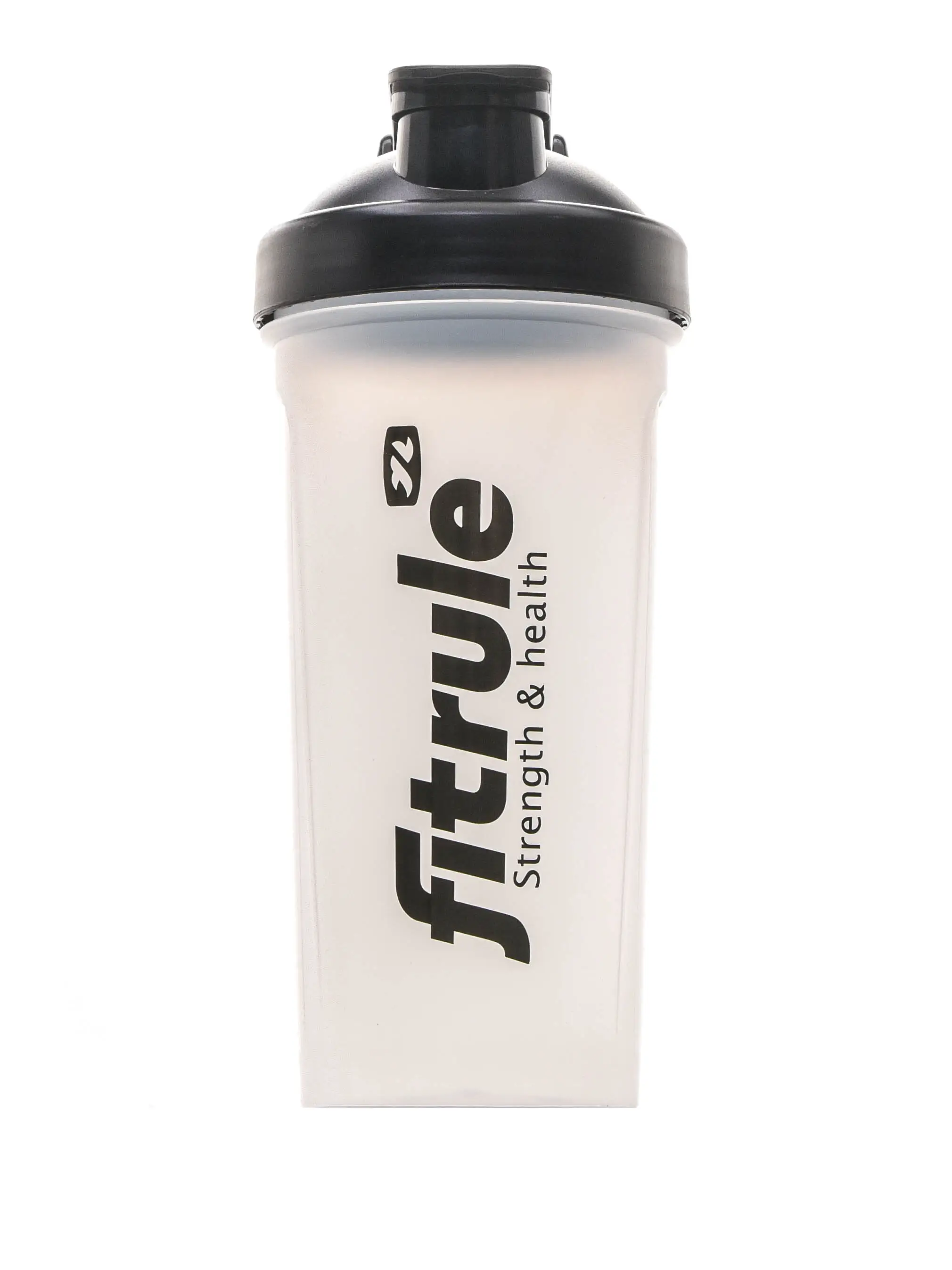 Шейкер FitRule классический с крючком (прозрачный черный лого+черная крышка)