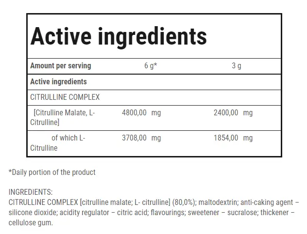 - L-Цитруллин малат – увеличивает производство оксида азота, улучшая кровоток и доставку питательных веществ к мышцам.