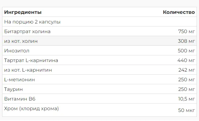 Липотропные элементы: Холин, инозитол, таурин, л-карнитин и л-метионин играют ключевую роль в стимуляции транспортировки и окончательного сгорания жировых частиц. Они помогают ускорить процесс разложения и использования жиров в качестве источника энергии.