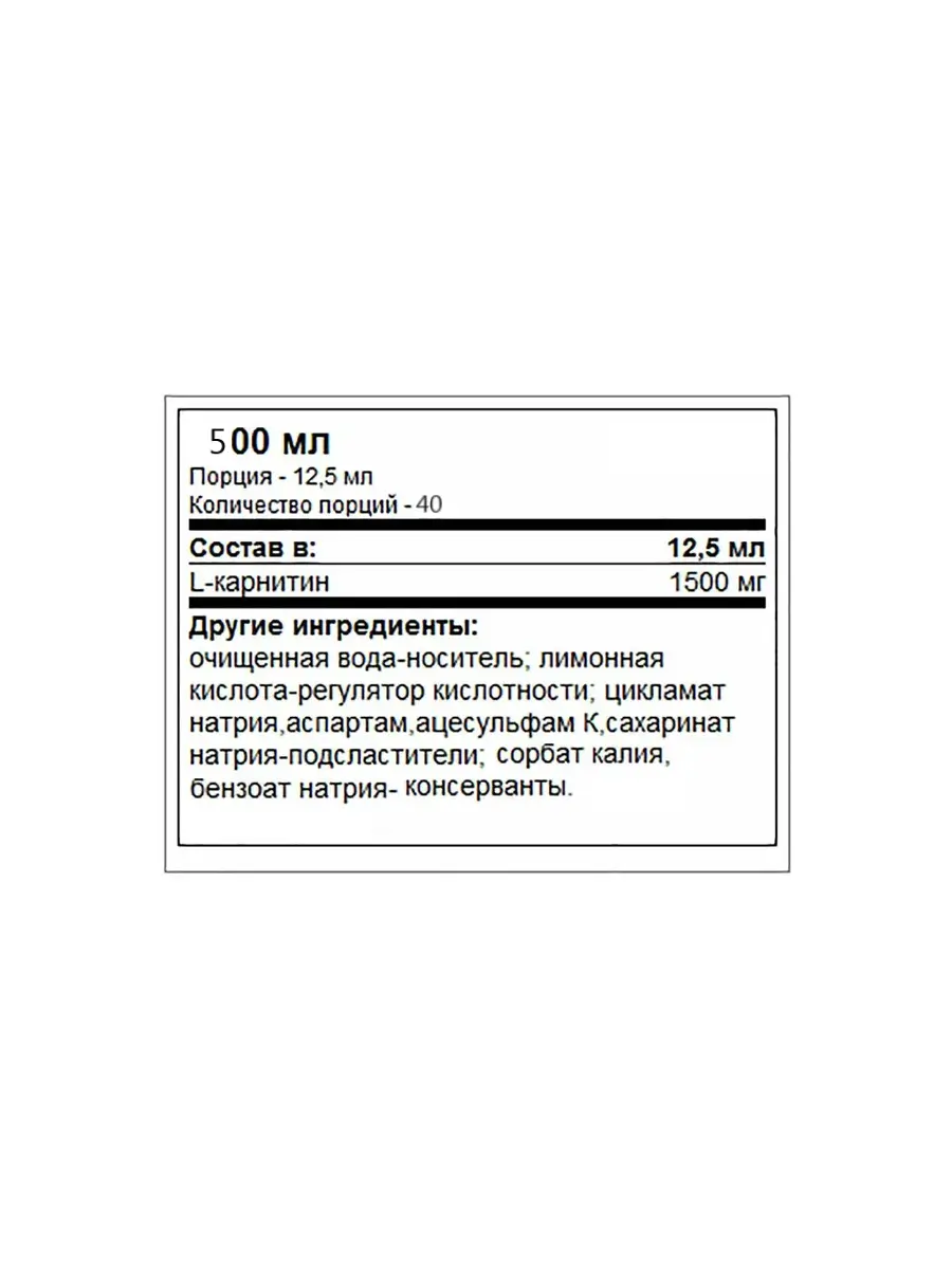 - Активное вещество: L-карнитин (3000 мг на порцию)
