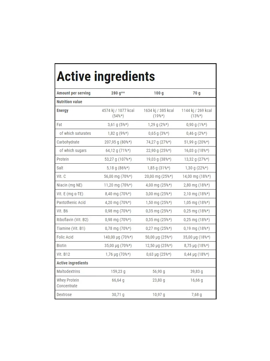 - Углеводный комплекс: Мальтодекстрин, декстроза