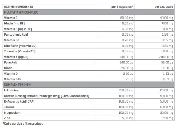 MULTIVITAMIN FOR MEN обогащен L-аргинином, экстрактом корейского женьшеня, DAA и таурином.